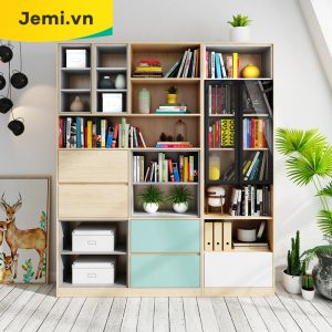 Kệ Sách Đẹp Mới Nhất, Tủ Sách Xám Xanh Giá Rẻ, KSXX02